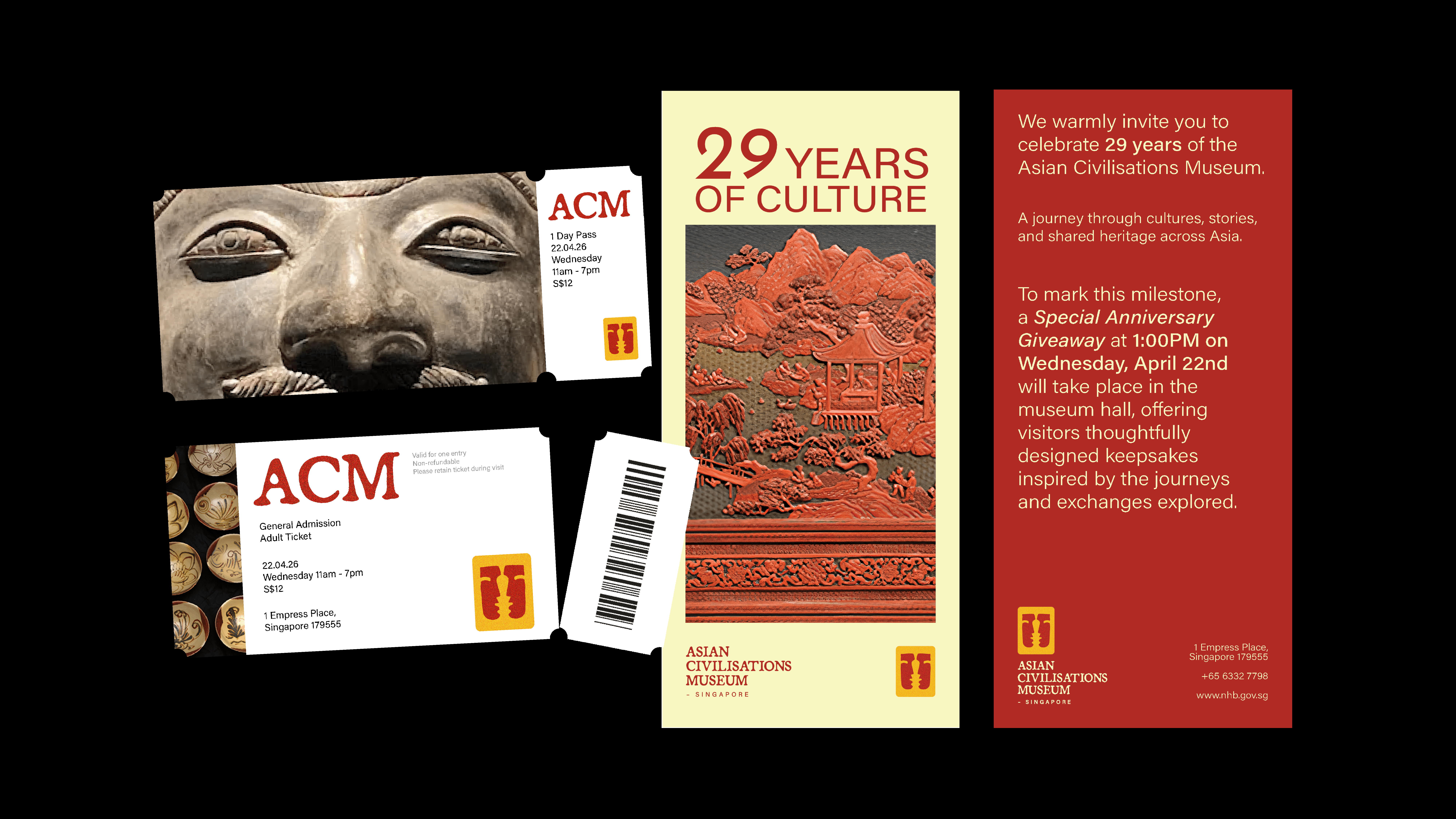 A conceptual rebrand of the Asian Civilisations Museum located in Singapore that highlights cultural exchange, using modern colors and graphic elements to make Asian history feel fresh, accessible, and relevant to audiences.