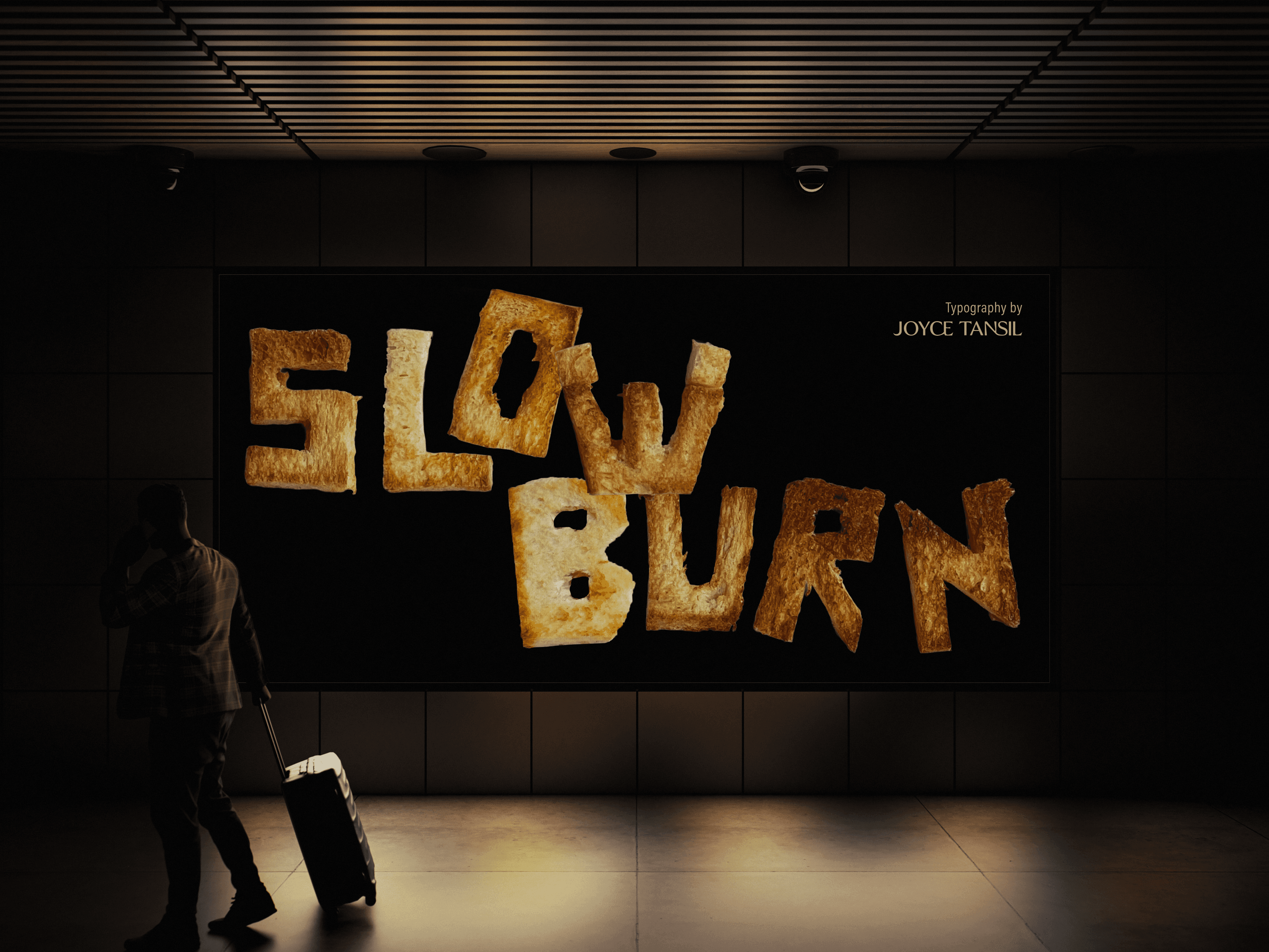 Slowburn is an experimental typeface project created for designers and creative brands seeking expressive typography with emotional depth. A typeface that communicates mood and narrative without relying on immediate visual impact. This was addressed through textured, rough letterforms that gradually build presence, encouraging slower reading and deeper engagement. Rather than demanding attention, the type invites viewers to spend time with it, allowing meaning to unfold naturally. The visual direction is influenced by hand-worn materials, and slow-burn storytelling, where emotion develops through restraint and subtle tension. These references informed the imperfect details and lived-in quality of the letterforms. Slowburn is intended for editorial layouts, branding, and poster design, where typography is experienced over time. In these real-world contexts, the typeface enhances atmosphere and emotional tone, demonstrating how type can communicate feeling through patience, texture, and quiet intensity.